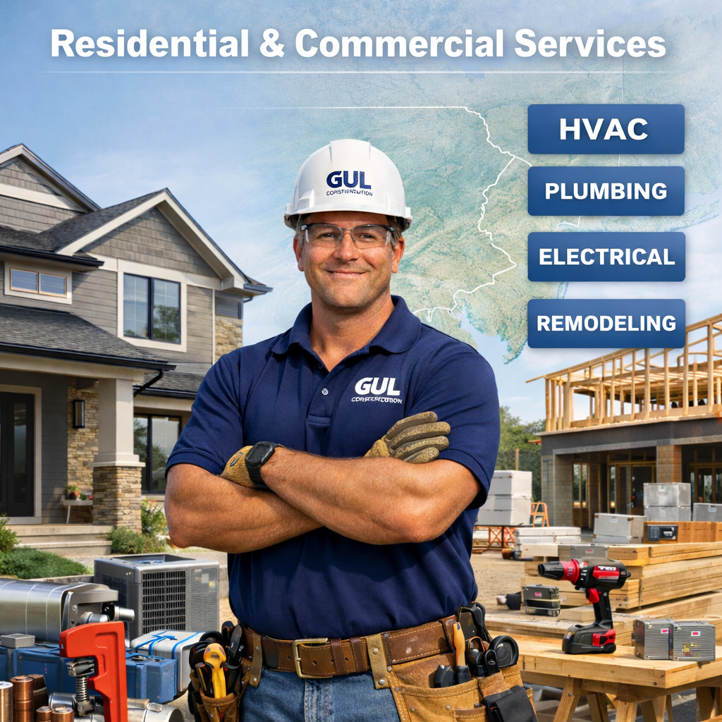 GUL Construction provides professional HVAC, plumbing, electrical, and remodeling services for residential and commercial properties. We are committed to quality workmanship, reliable service, and customer satisfaction on every project.